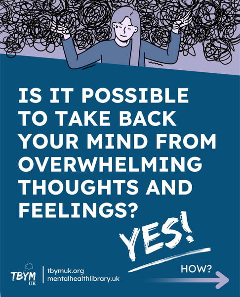 LinkedIn • 12th May 2025 Is it possible to take back your mind from overpowering thoughts and feelings? LinkedIn post for TAKE BACK YOUR MIND charity based on their style guide (post copy + 6 slides in Canva design)